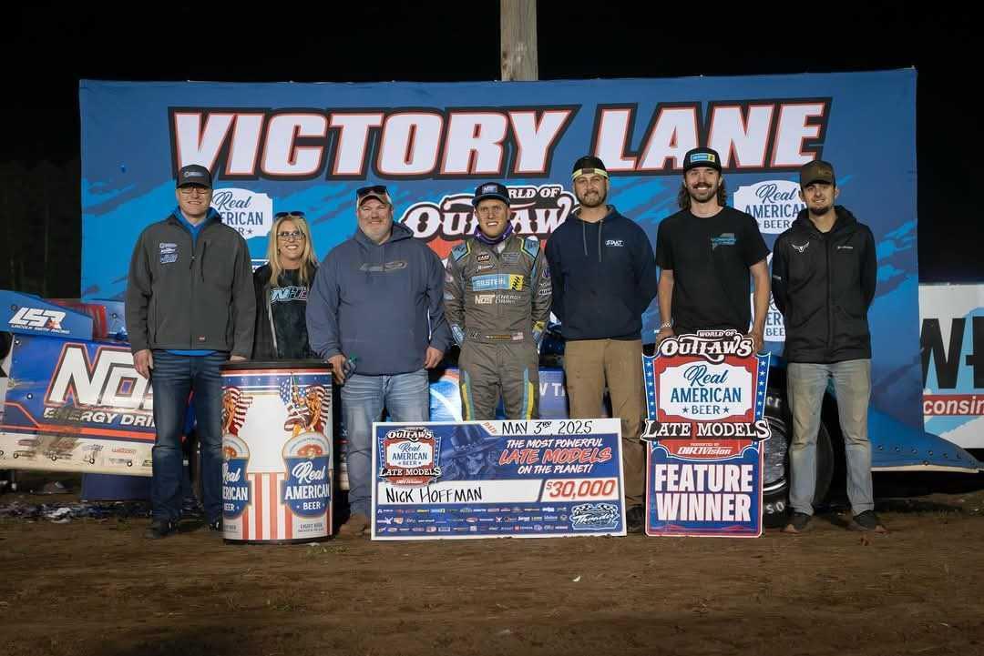 MOORESVILLE, N.C. (05/05/25) – Nick Hoffman snapped a recent dry spell with the World of Outlaws Real American Beer Late Model Series over the weekend with a career-high $30,000 victory in the Dairyland Showdown at Mississippi Thunder Speedway aboard his Tye Twarog Racing / NOS Energy Drink No. 9 Longhorn Chassis Super Late Model.
