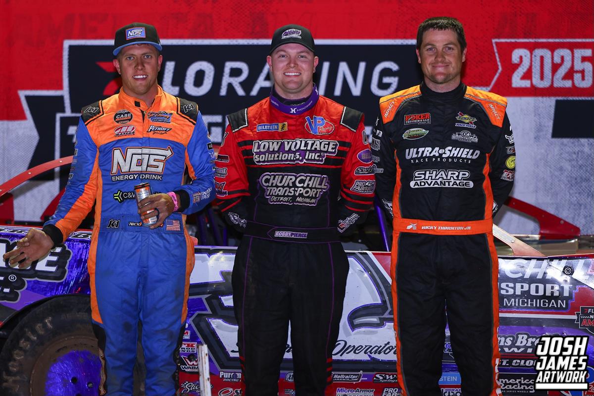 Hoffman secured a spot in the $20,000-to-win A-Main with a runner-up finish in his heat race. Rolling off ninth in the 50-lap feature, he charged forward to a third-place finish, joining winner Bobby Pierce and runner-up Ricky Thornton Jr. on the podium.