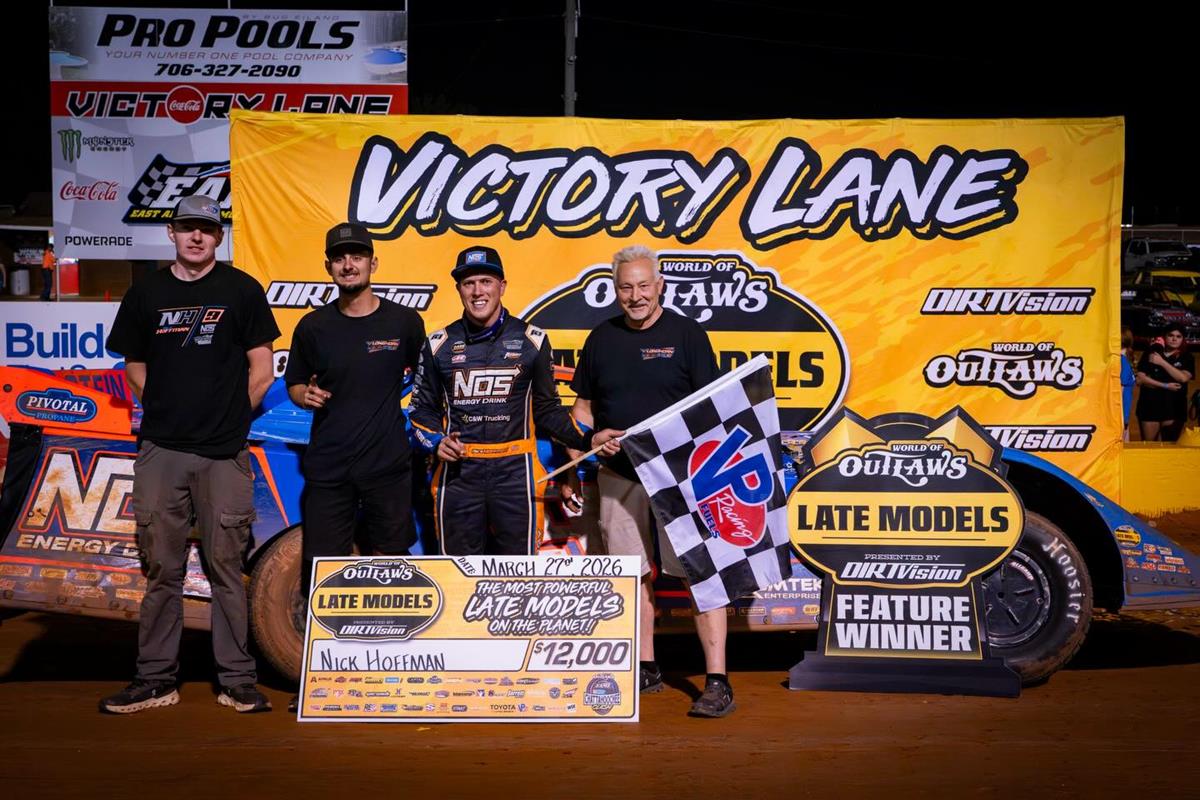 MOORESVILLE, N.C. (March 31, 2026) — A patient Nick Hoffman drove to a $15,000 victory in Friday’s World of Outlaws Late Model Series opener at East Alabama Motor Speedway.